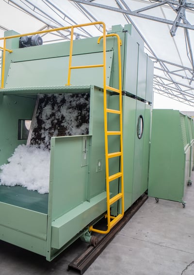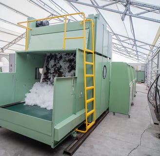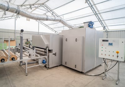 All the accessories needed to complete a peeling, cutting, and testing line, with feeding and peel extraction bays.